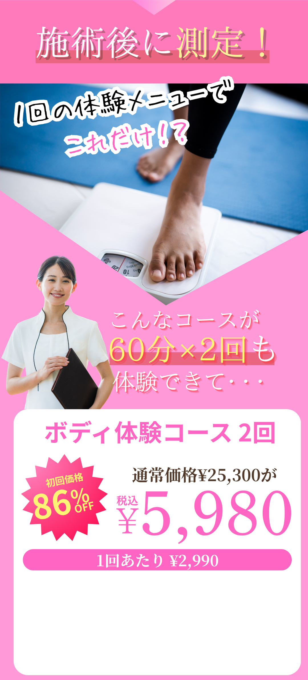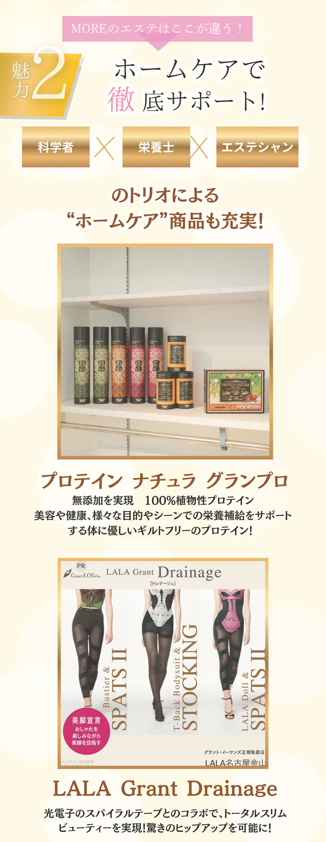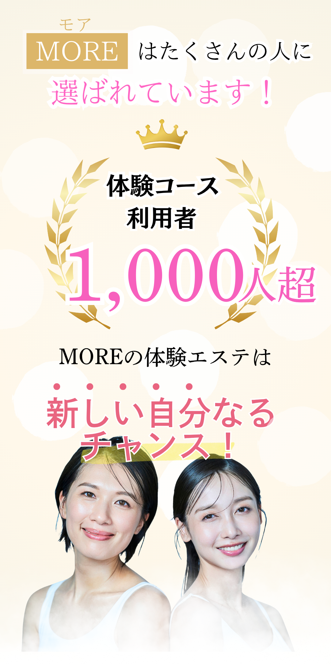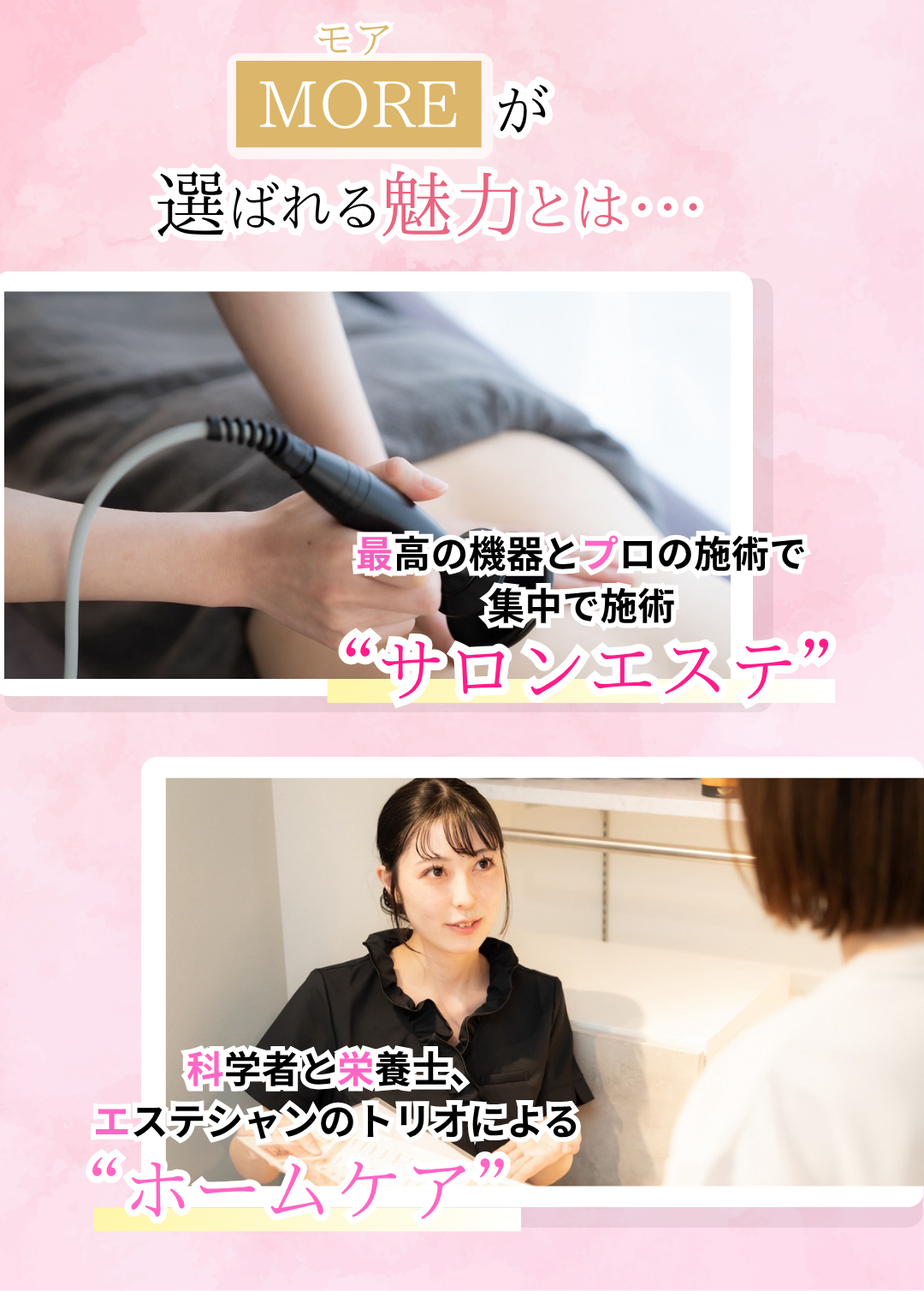 A. ひとりでも多くのお客様にMOREを知っていただくためのキャンペーンだからです。キャンペーンコースでご納得いただいた上で、ご入会されたり、商品をご購入されることもできます。また、ご自宅でのお手入れや、より成果を高めるために、あなたに合った商品もご案内させていただきます。