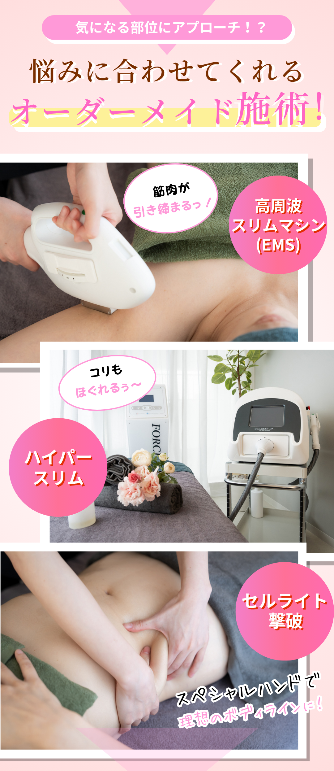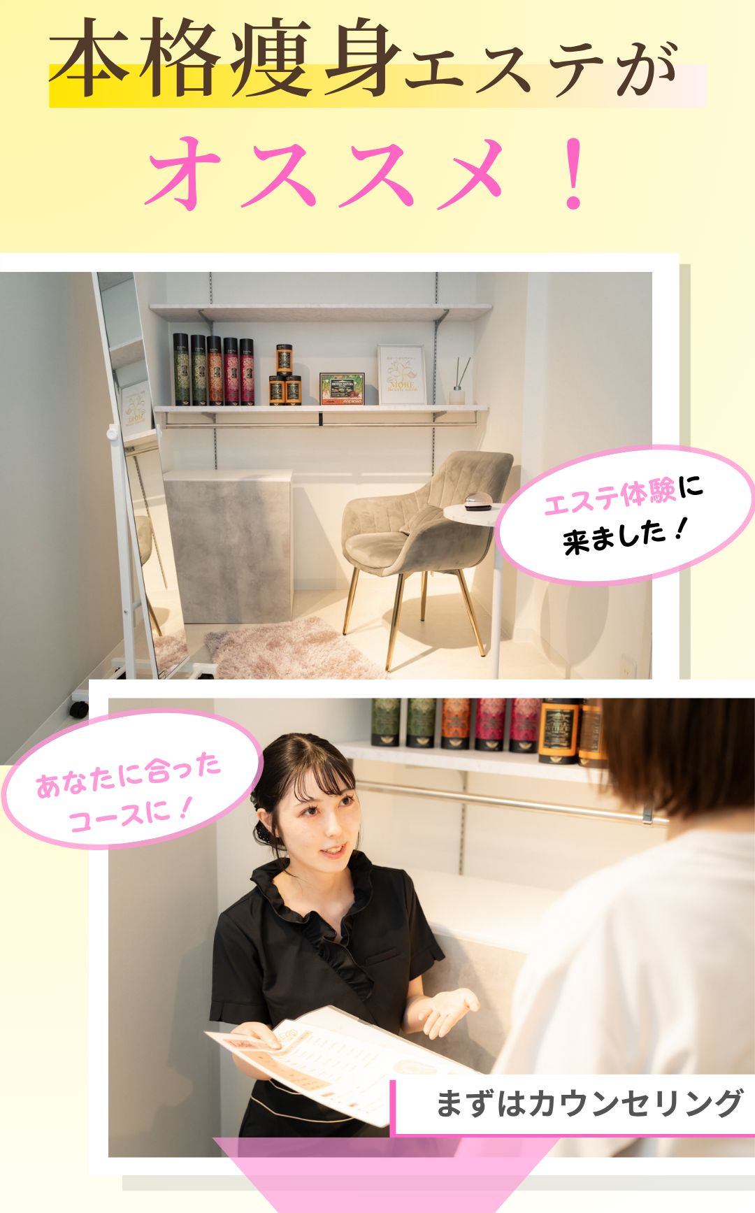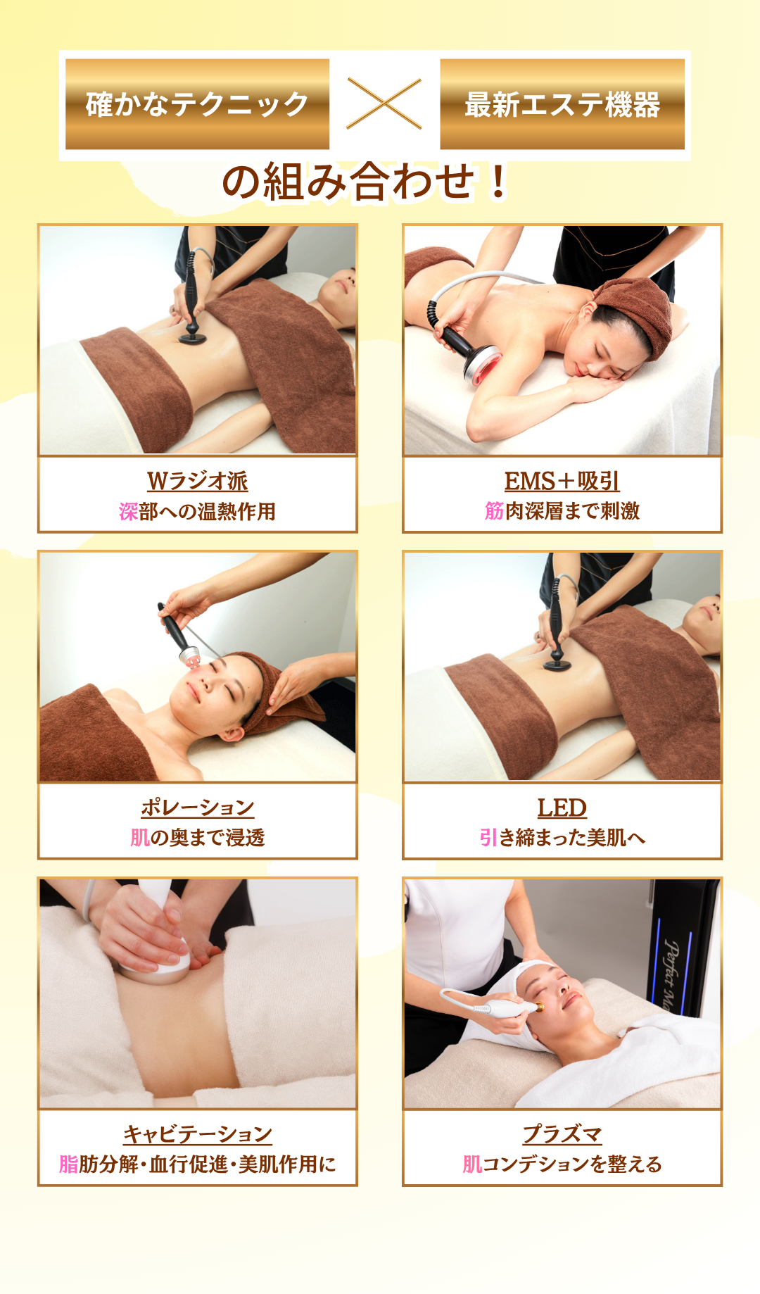 A. 担当エステティシャンがお客様の気になる内容やご要望を伺い、お身体やお肌状態を確認の上、決めさせていただいております。